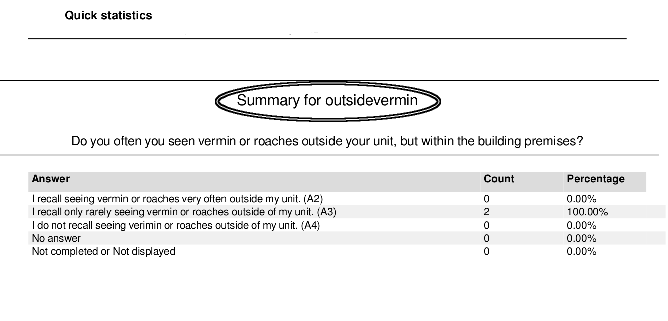 | Additional Information | I suggest we are allowed to change that "code" when used in headers printed or otherwise create a method so that when non-computer people read out surveys, a header like: Summary for "code" can be changed to something more meaningful and aesthetically pleasing to the viewer. | ||||