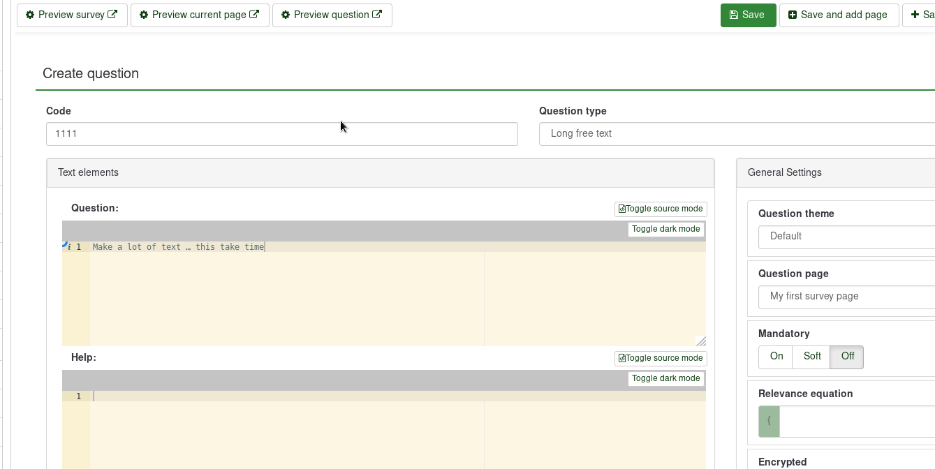 | Additional Information | Some other part can disable submission, to control and finc reproduce way : Answer and sub-question are inside the same form … Since subquestions + answers + atributes are now on the same form : we have more max_input_vars issue, then more report about "it was not saved" … | ||||