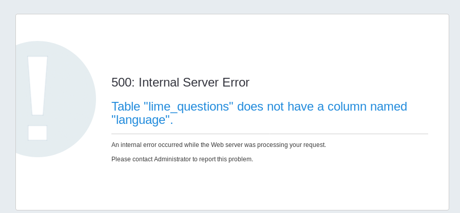 | Description | When click on condition on a question : receive a 500: Internal Server Error | ||||