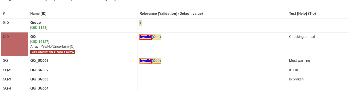 | Description | When there are subquestion relevance : error count is more higher than needed | ||||