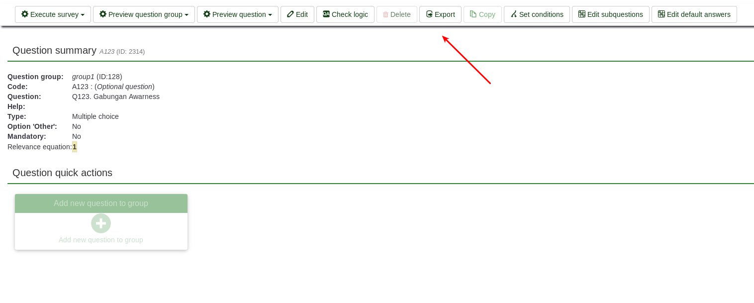 | Additional Information | the button should be in both question overview and question editor toolbars In LS3, the question export function is in question summary. | ||||