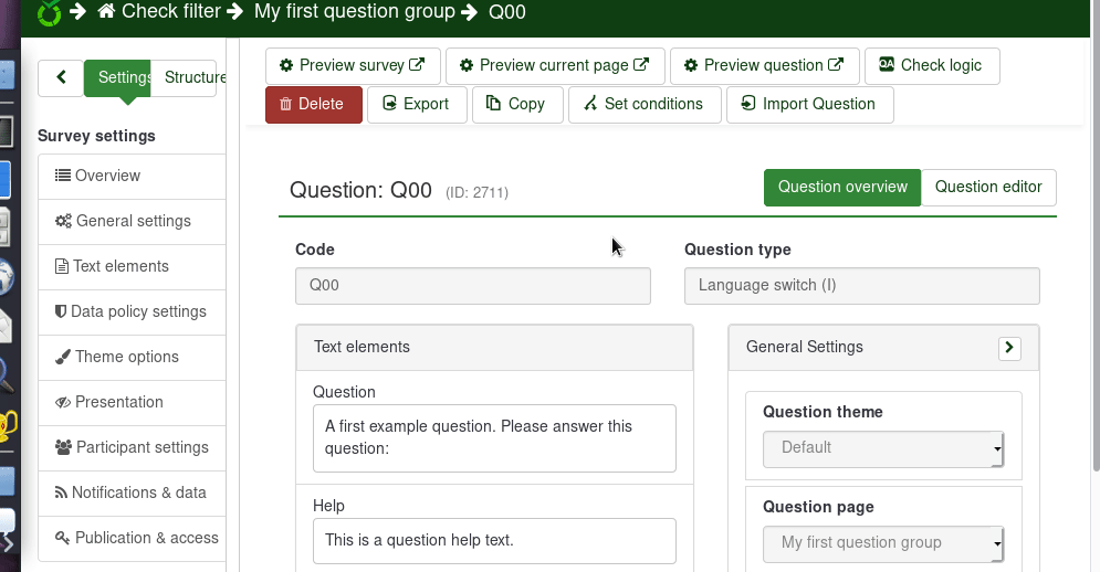 | Complete LimeSurvey version number (& build) | 4.0.0-RC7 github | ||||