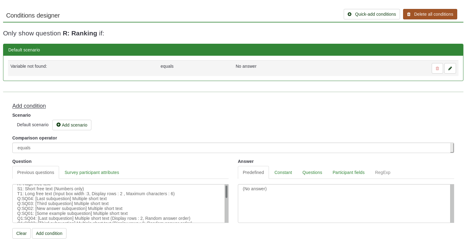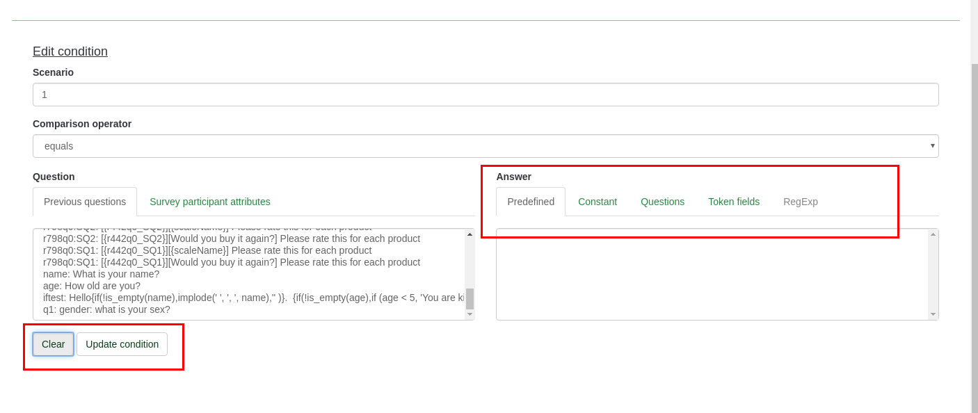 - Edit the condition and leave the answer field empty (clear)