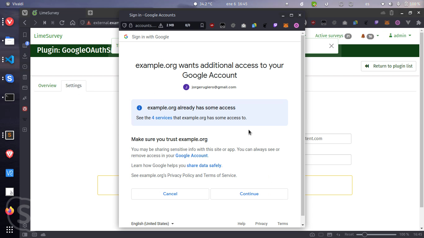 POC: https://github.com/LimeSurvey/LimeSurvey/tree/feature/15664-Google-OAuth-plugin |