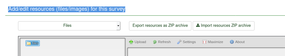 Maybe some improvment. On admin/filemanager&surveyid=768158 : show ONLY resource of 768158 ? Not global or other survey. |