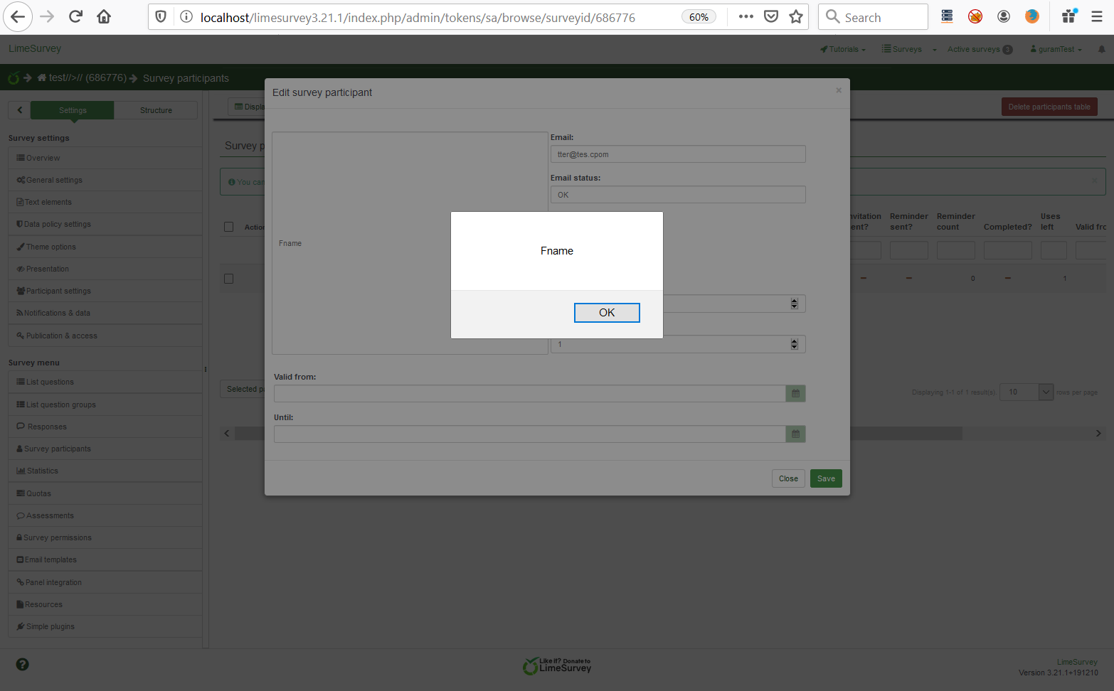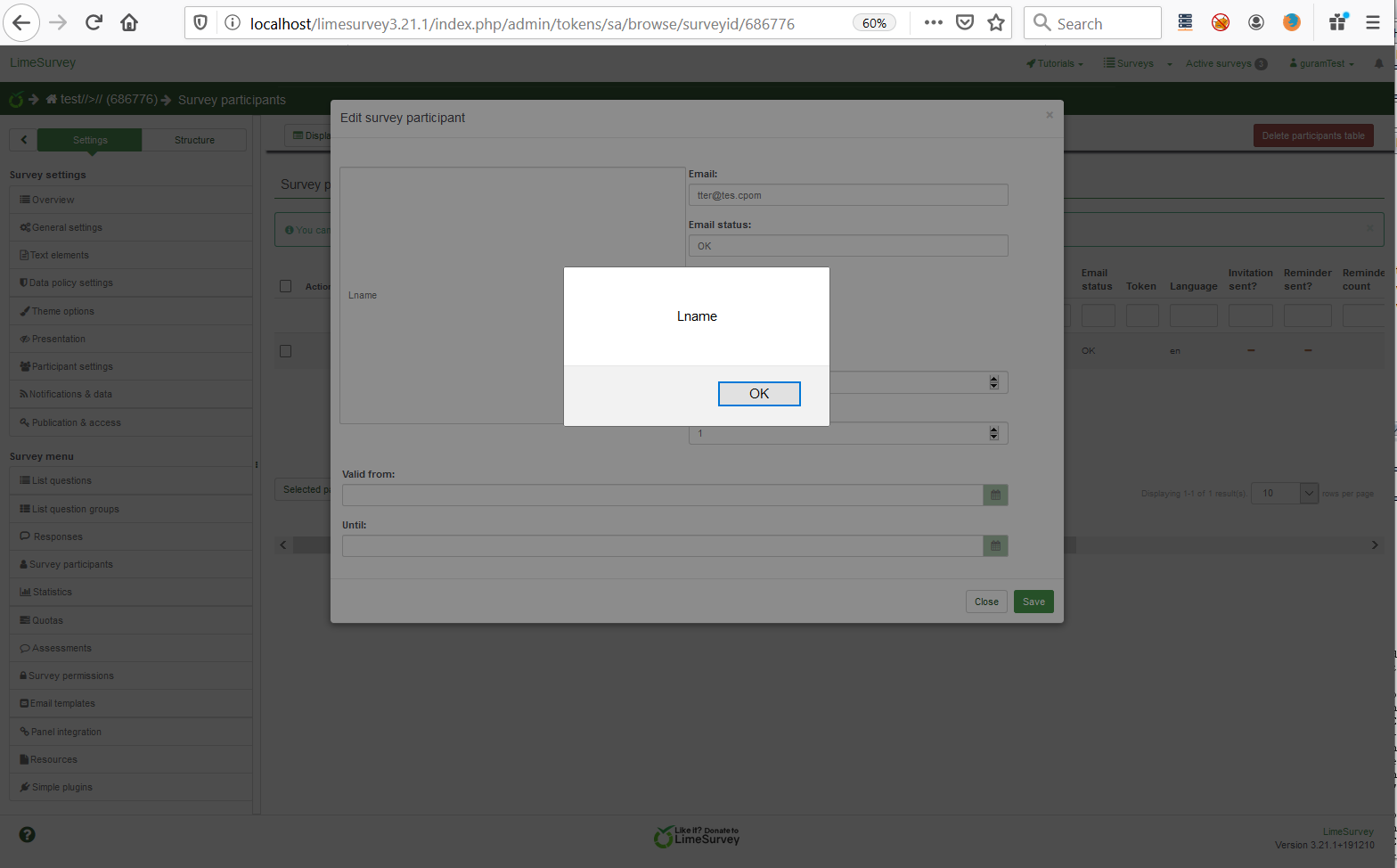 | Complete LimeSurvey version number (& build) | limesurvey3.21.1+191210 | ||||