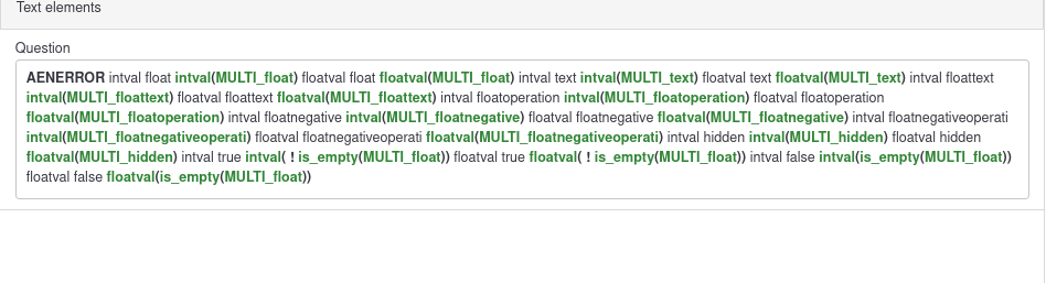 | Description | When view question text in 3.X and before : Expression part are shown with specific color. Currently even error are not shown as red. | ||||