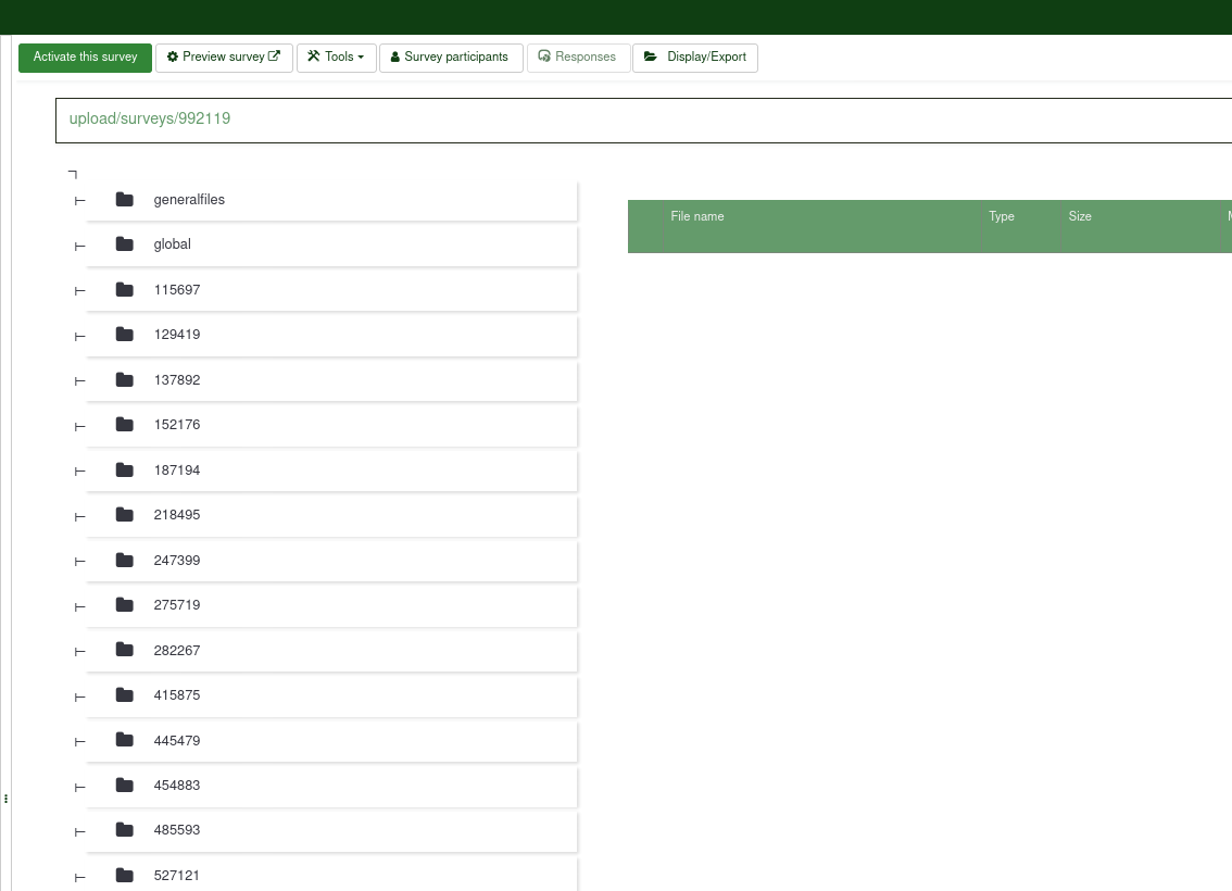 Your issue is surely related to this issue 17128: Outdated menu follow to 404 : demo.limesurvey.org I report again this issue with menu, because all previous one was closed as "reset to default" … |