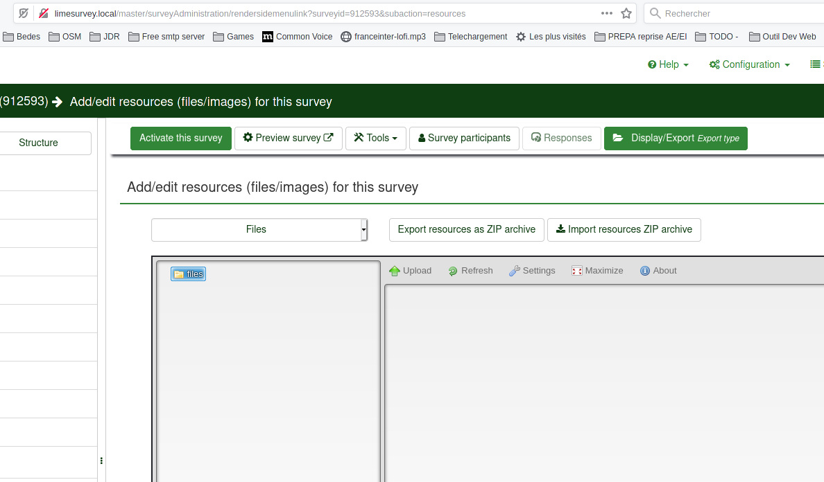 | Summary | 15732: Ressource manager show ressources for ALL surveys … | ||||