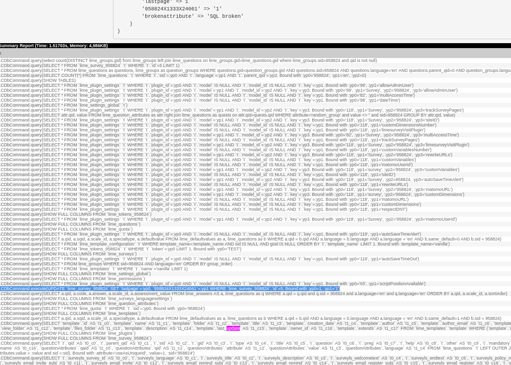 https://github.com/LimeSurvey/LimeSurvey/pull/1371 This fix the issue … but … i like to be sure it's due to PDO system :) |