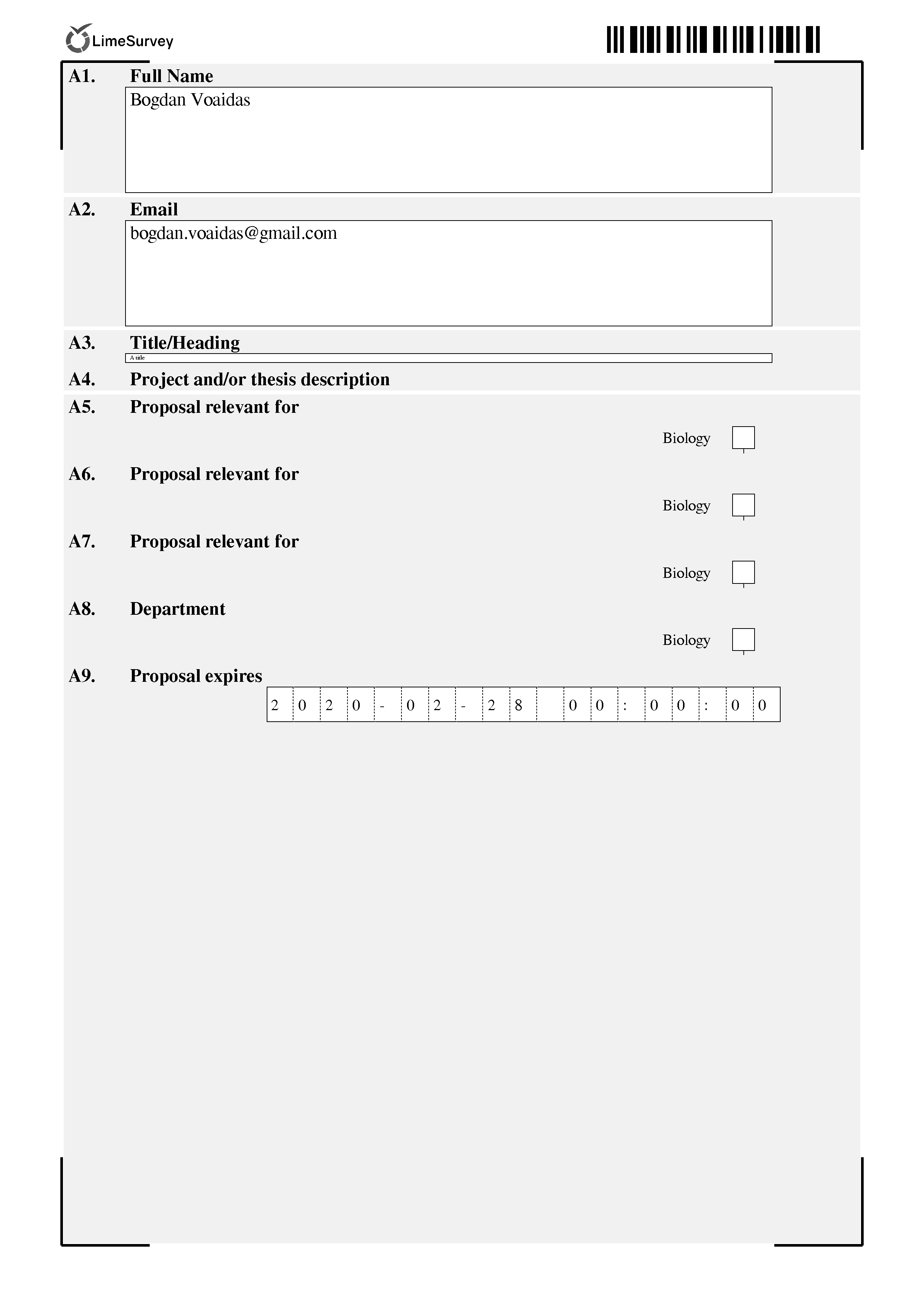 | Complete LimeSurvey version number (& build) | 4.0.0+200116 | ||||