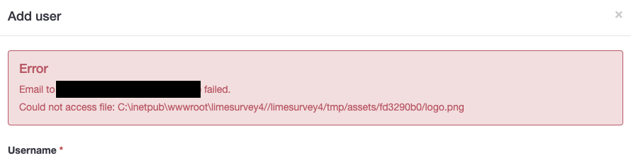 | Steps To Reproduce | make a user, choose to set password now, i used the suggested random one and save. The user is created, but the error appears atop the screen. The confirmation email is indeed missing the image | ||||