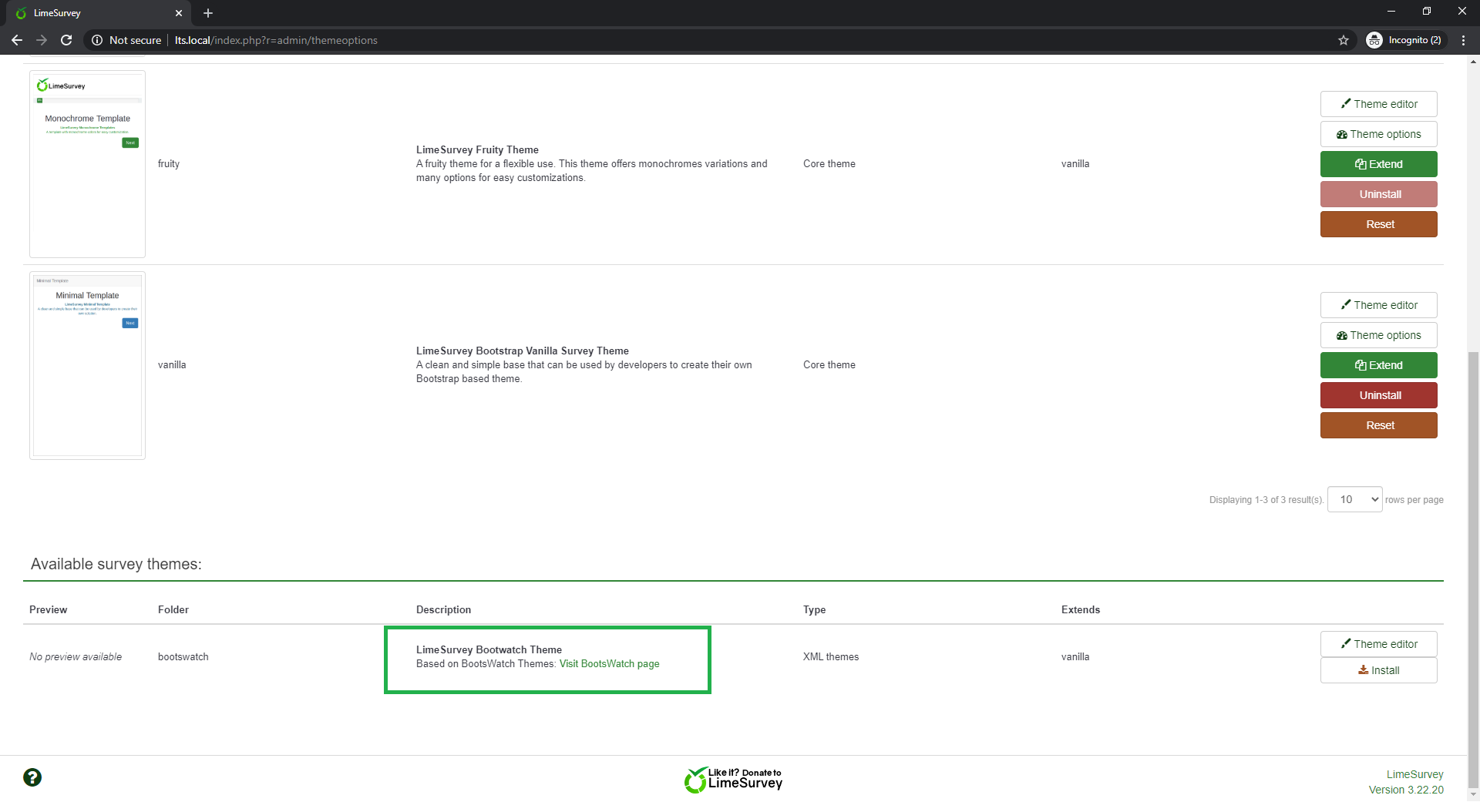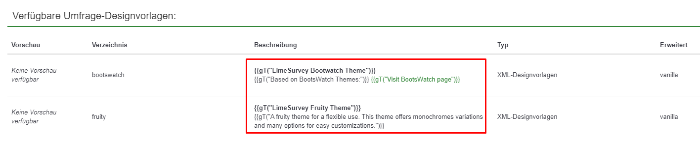 | Description | When uninstalling some default themes at a fresh 3.22.5 Limesurvey, the theme description is not parsed correctly, see screenshot. | ||||