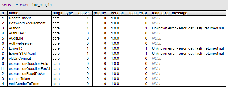 | Additional Information | While searching for 'auth' at the database, I found that row: lime_plugins - Authdb - load_error: 1 - load_error_message: "Class 'AuthPluginBase' not found /home/****/public_html/avalie/application/core/plugins/Authdb/Authdb.php" I changed the column "load_error" from 1 to 0 and the input fields are now working!!! for those who have that problem, this should solve: UPDATE | ||||