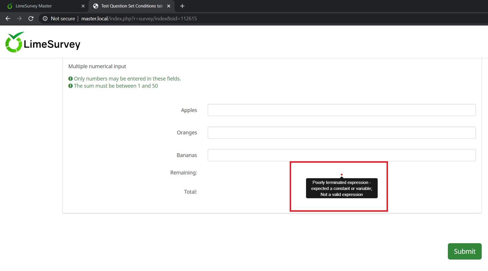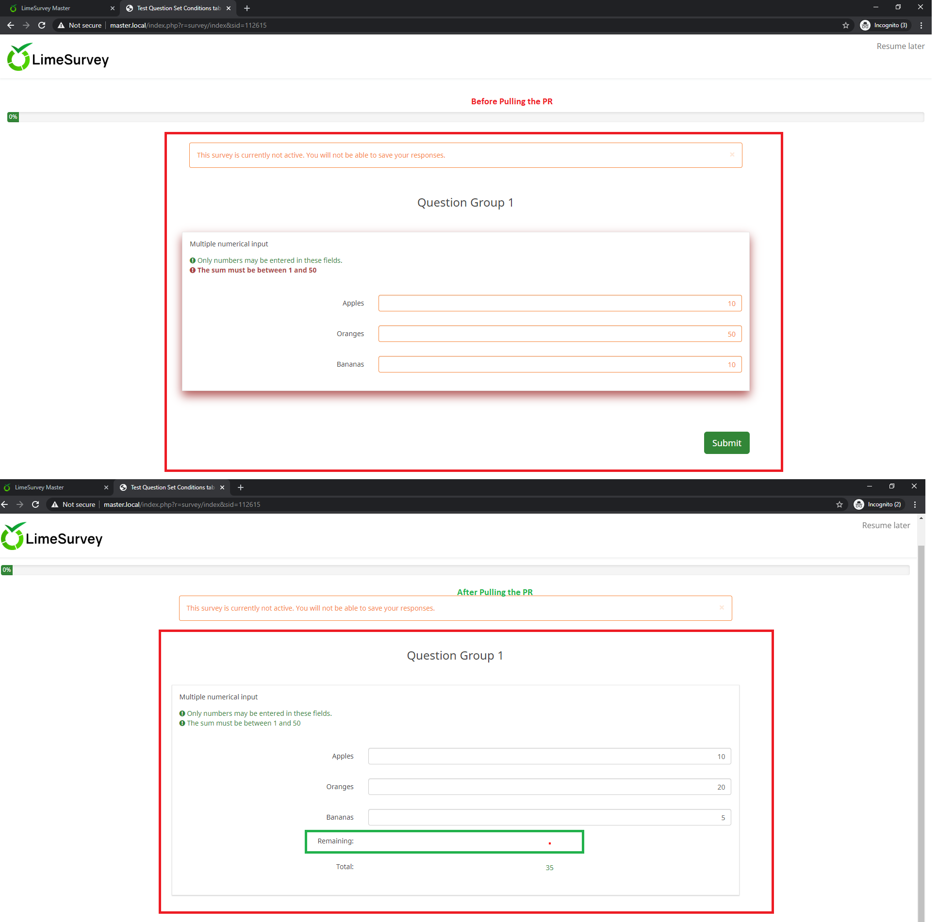 | Summary | 15978: Multiple numerical input (Equals sum value: Remaining and Total missing) | ||||
