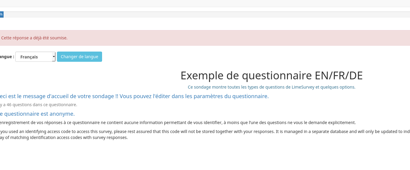 | 2020-04-16 16:16 | DenisChenu | Summary | Broken survey after language changer on home page => Broken survey language (lack of questionl10ns) unfixable |