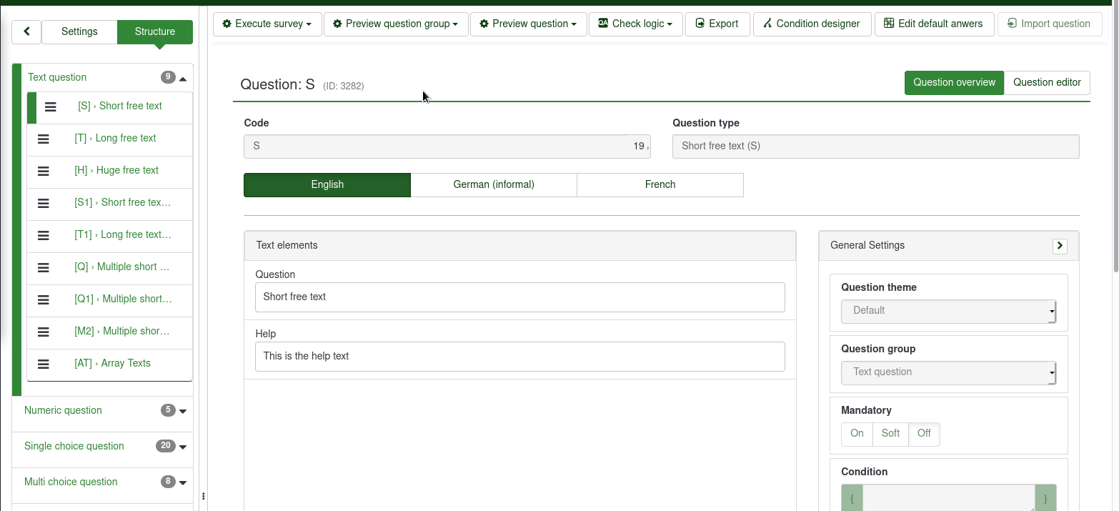No : in questionl10ns : qid are same for all language Else : more a check integrity here (in my opinion) But : better if question editor throw an error or something like this : see screencast |