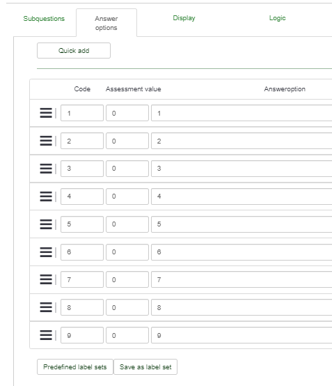 | Steps To Reproduce | Create matrix question (type F) with subquestions | ||||