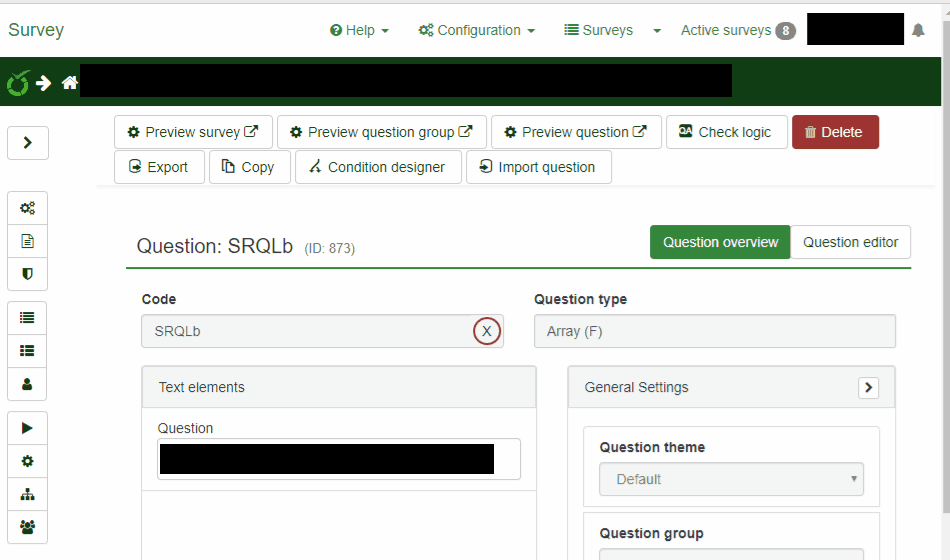 | Description | When I copy a question (type: array F) I can not save the copy. I get an error message - this is wrong - the code does not yet exists (see attached image) | ||||