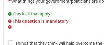 This issue is «16095: Exclamation sign doesn't have text or is duplicate.» @cdorin write it can be a translation issue : https://bugs.limesurvey.org/view.php?id=16095#c56951 It's not |