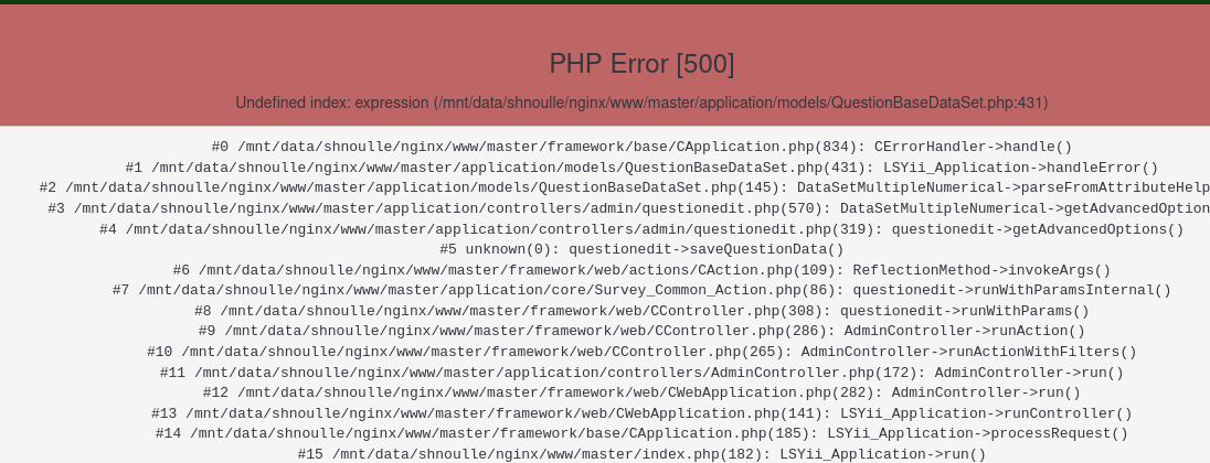 | Description | With debug at 2 : receive a 500 error each time a question is saved | ||||