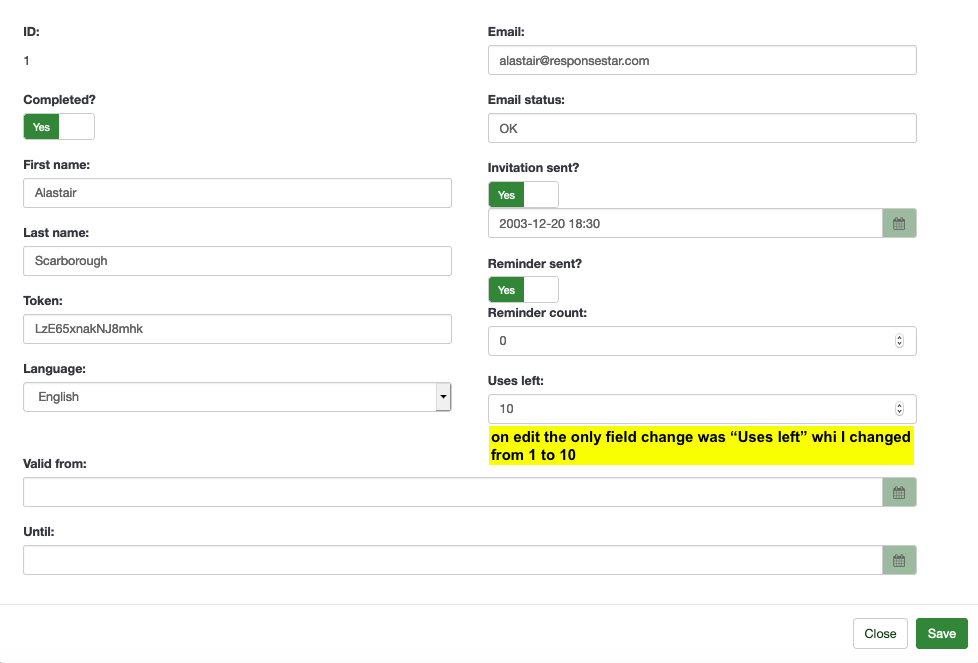 | Complete LimeSurvey version number (& build) | Version 3.22.12+200406 | ||||
