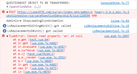 jquery-3.4.1.min.js:2 POST https://cupe1978.com/survey/index.php/admin/questioneditor/sa/saveQuestionData/gid/7/sid/624697 500