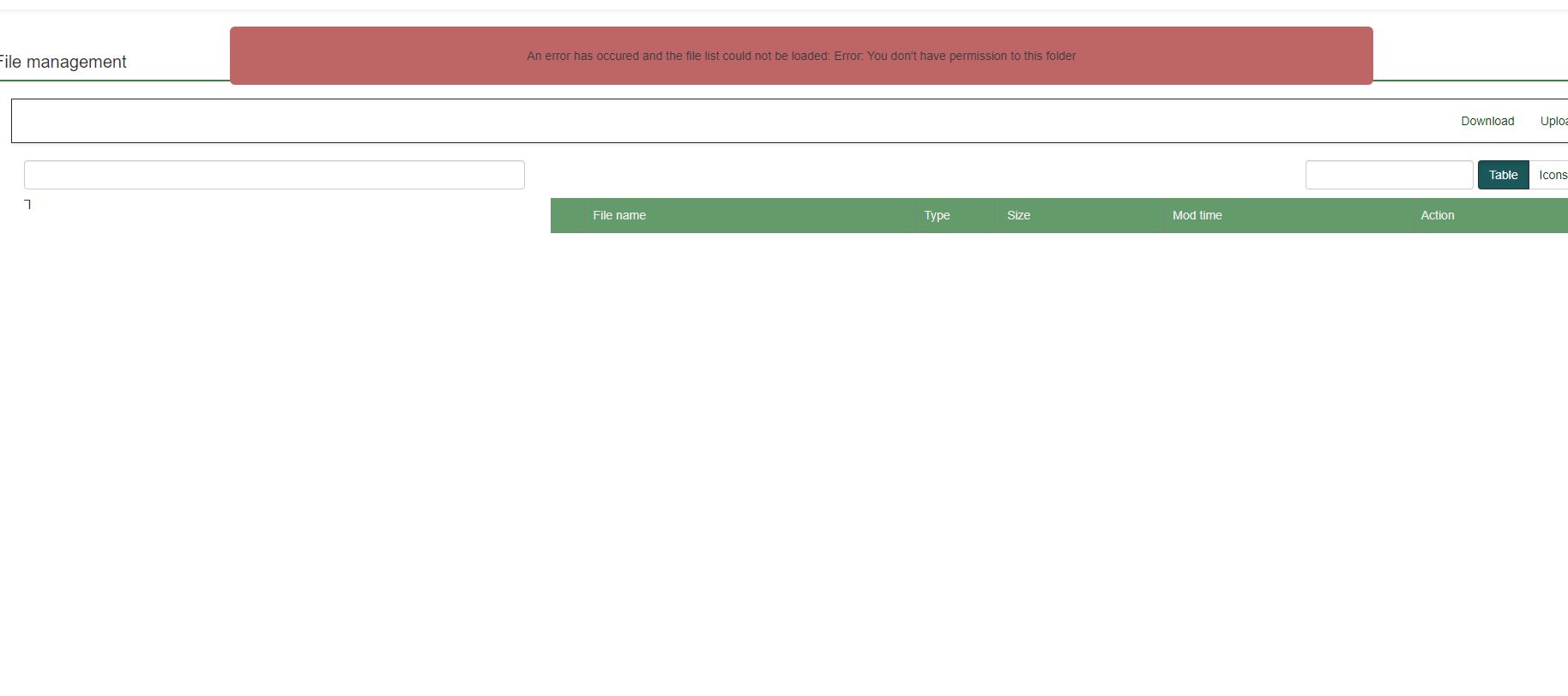 | Description | The filemanager (Settings -> File Manager) does not work properly. It only shows the error An error has occured and the file list could not be loaded: Error: You don't have permission to this folder and no files. However, one can upload files via "Upload" button, which are then show on the server logged in by FTP, but not on the FileManager. Already changed the permissions as stated in https://manual.limesurvey.org/Installation_security_hints. | ||||