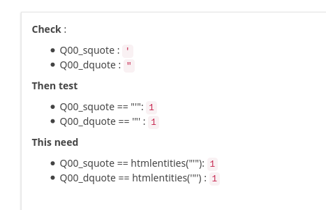 | Summary | 16222: Simple cote \' and ouble quote in free text : difference in PHP and JS and hard to test | ||||