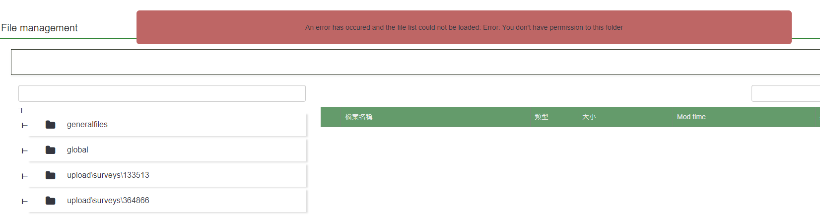 | Description | In the file application\controllers\admin\LimeSurveyFileManager.php