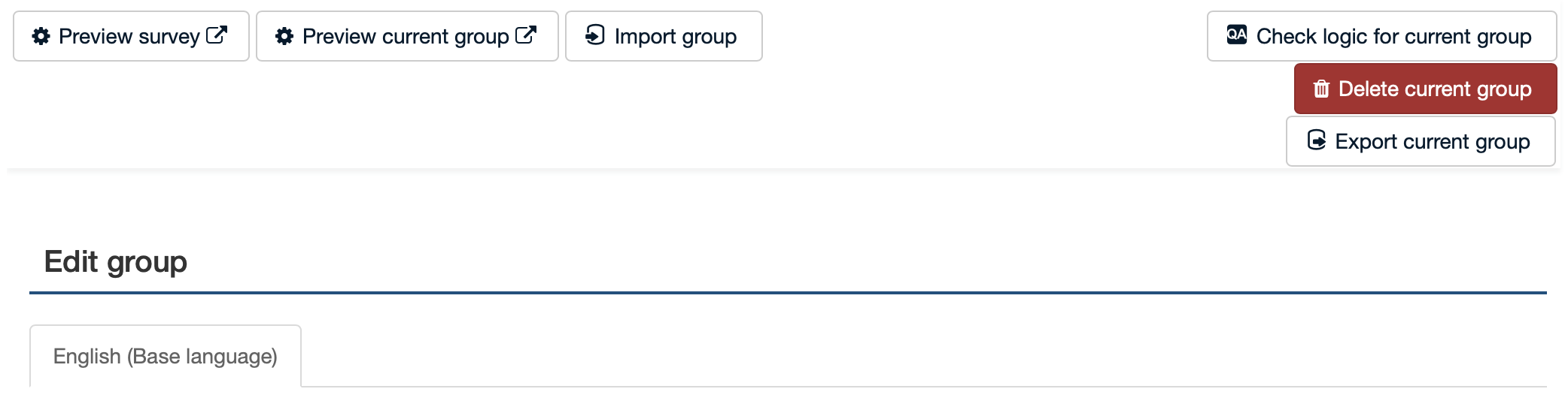 | Description | The "Save" button is missing in the "Edit group" page. The "Edit group" page can be reached within the admin by choosing a survey -> settings tab (in the right sidebar), scroll down to Survey menu -> Group list -> Edit group | ||||