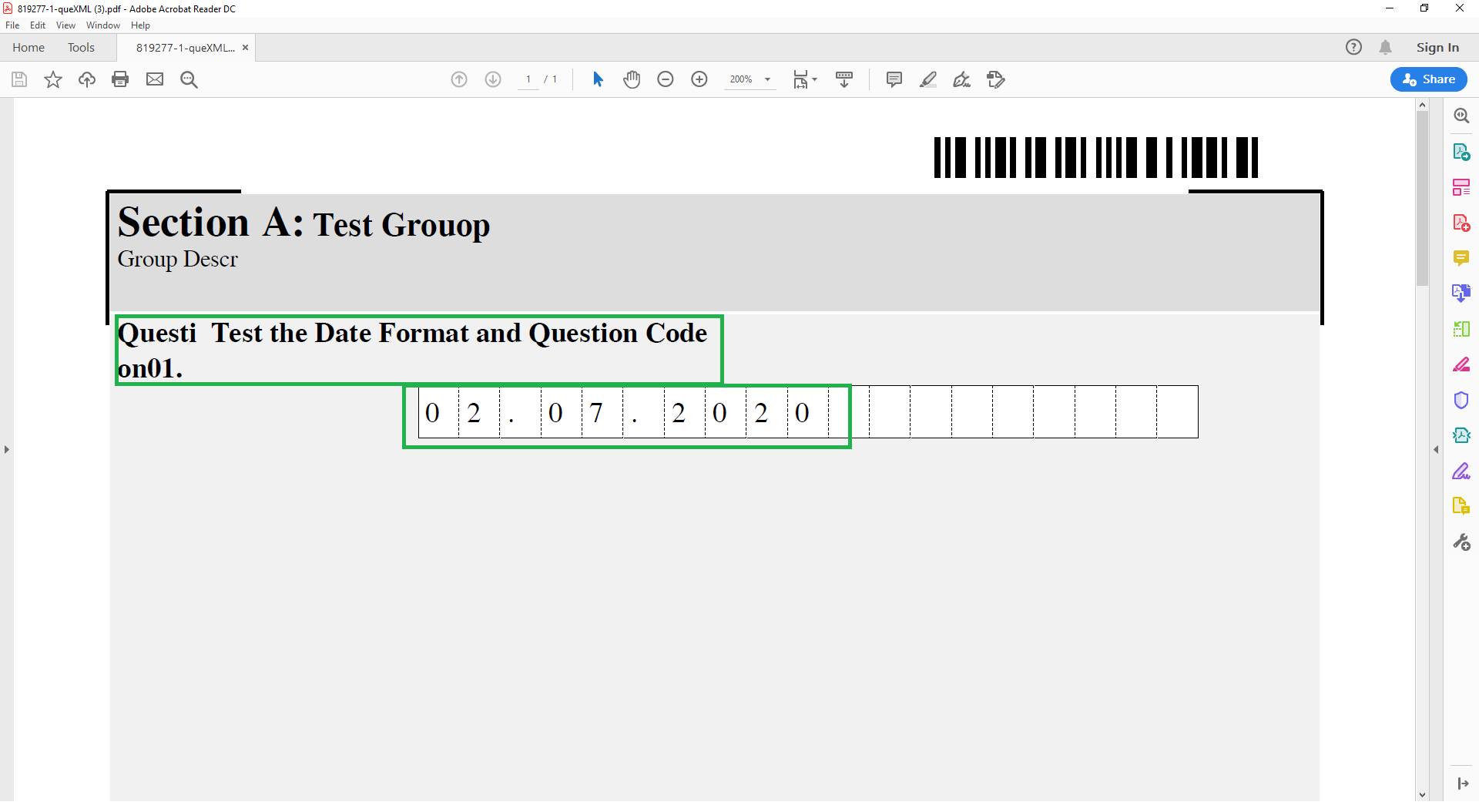Tested by checking out to branch.Date format is as survey settings and Question code is displayed in PDF. |