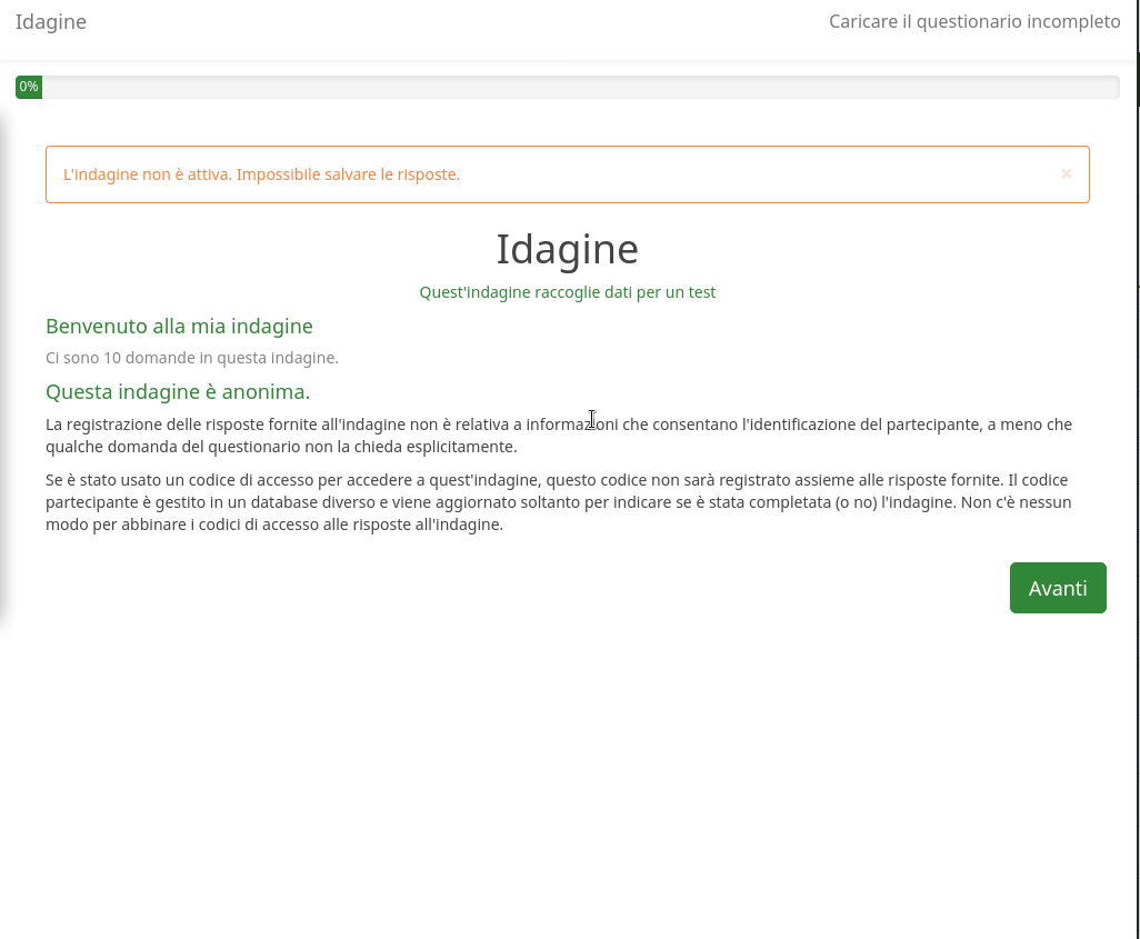 | Complete LimeSurvey version number (& build) | Versione 4.2.3+200511 | ||||