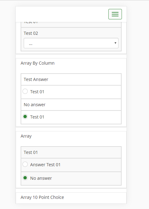 | Summary | 16268: Array question type: Array by Column not displayed correctly during survey taking (mobile phone) | ||||