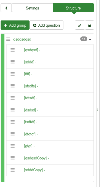 I attached a screenshot of the new structure in LimeSurvey 4.2.2, with a copy of two questions added |