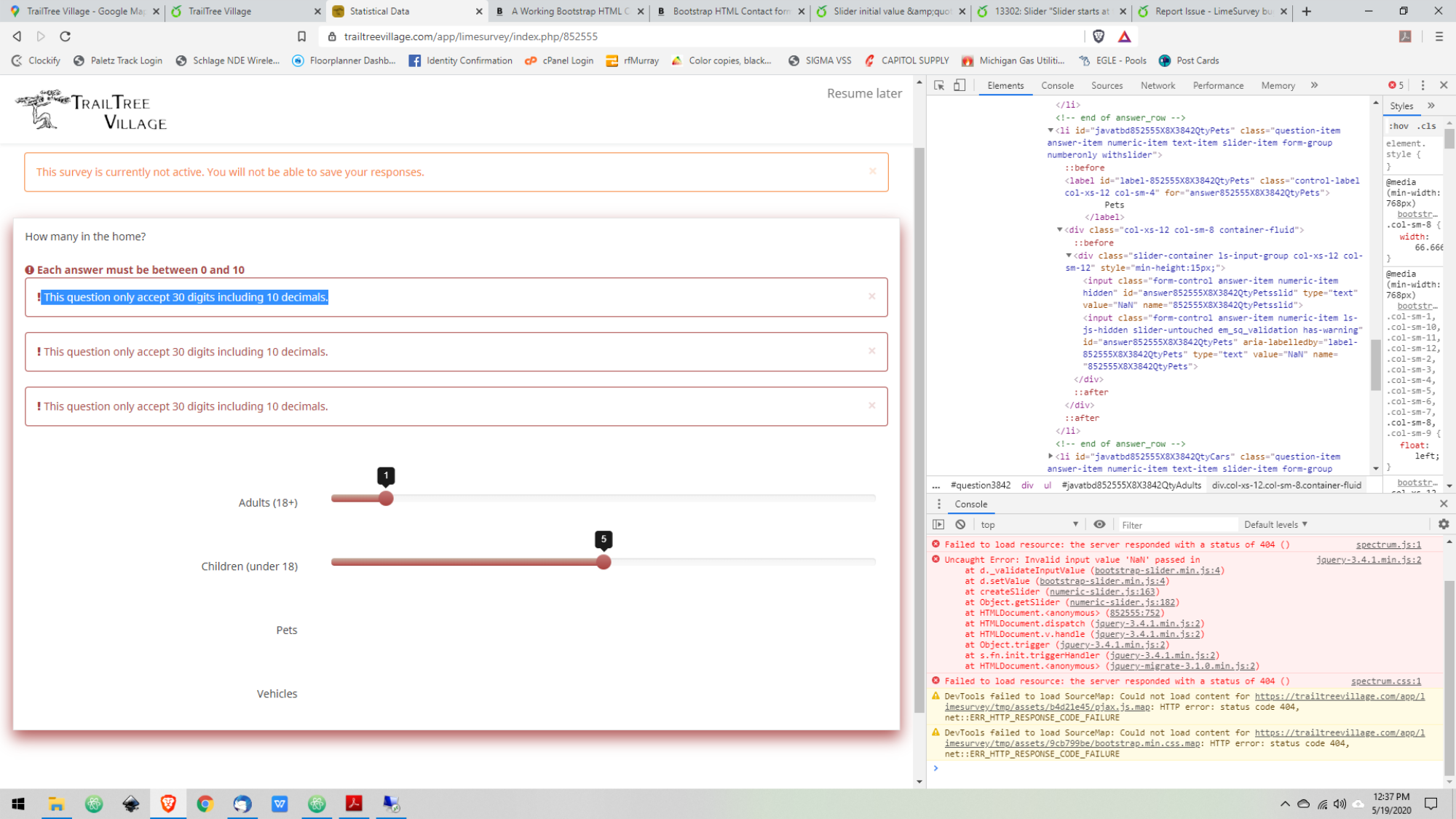 | Description | This appears that it is similar to an issue in previous builds and was corrected, but has returned in 4.x When running the survey I get an error message of " This question only accept 30 digits including 10 decimals." when leaving a value of 0 on a slider | ||||