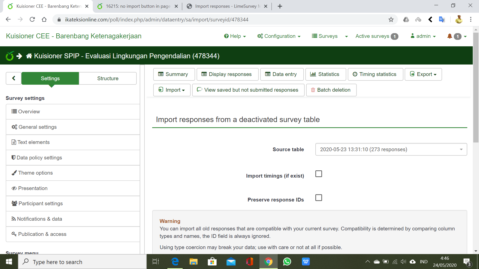 | Description | there's no import button in page import responses from a deactivated survey table. | ||||