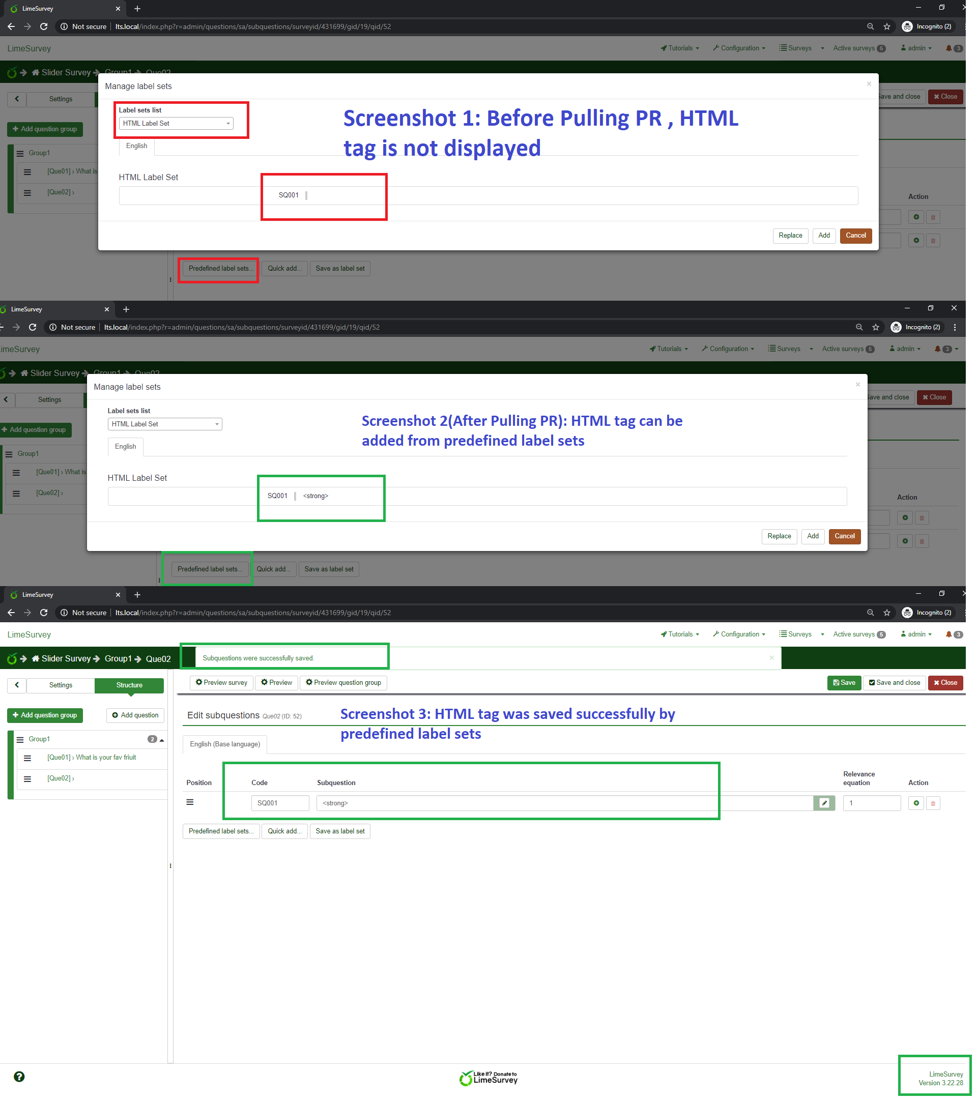 Tested the issue before pulling the PR, Issue exist. Tested the issue after pulling the PR, below are my findings: |