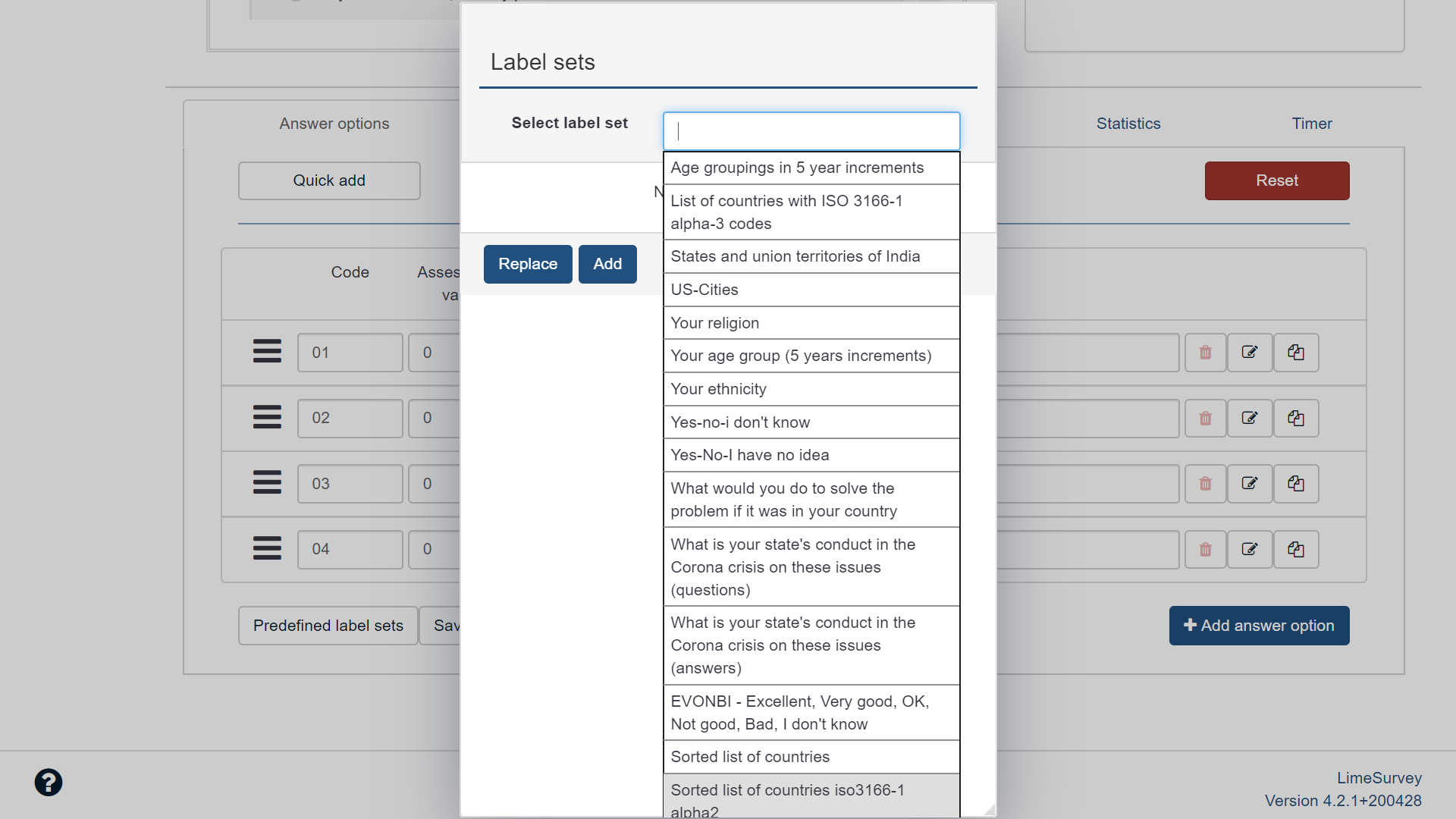 | Complete LimeSurvey version number (& build) | Version 4.2.1+200428 | ||||