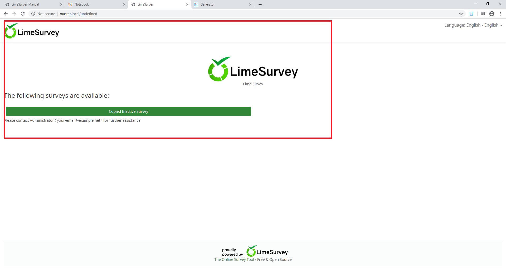 | Complete LimeSurvey version number (& build) | Version 4.2.1+200428 | ||||