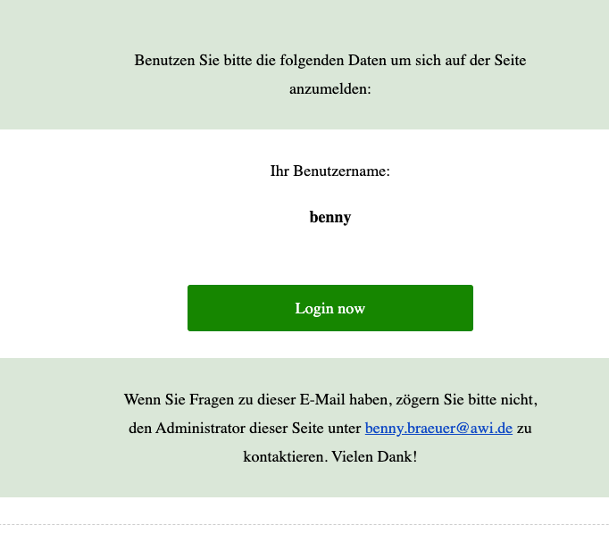 | Description | Hi all, I have an issue with user creation. When creating a new user and setting a password, the mail is properly sent out. But it does only contains the given user name, not the generated password. See attached screenshot What has to be done to sent to generated password too? I am running 4.3.0+200616 / CE Attached a screenshot of the part in a mail where the user would expect the password. Kind regards | ||||