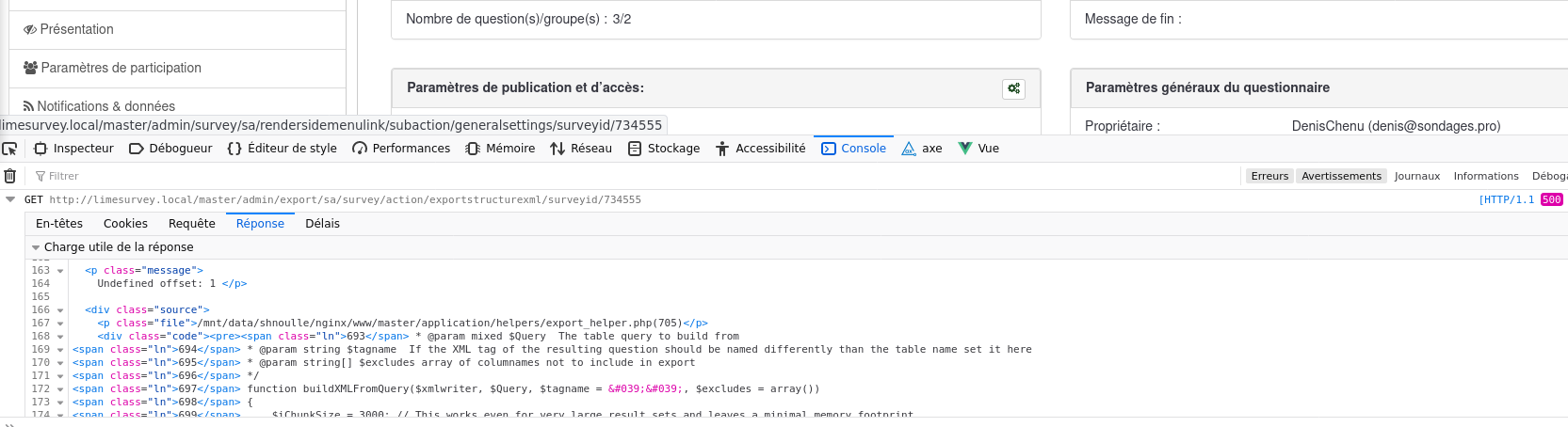 Creating a new survey based on an existing survey in the adminpanel from Limesurvey (copy a survey) is also not working. |
