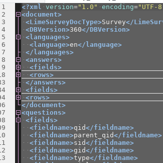 | Description | Using surveyGetXMLData() to build a XML file for import into XMLImportSurvey() is producing an Examening the produced XML I can see why (the newly normalized language structure is appended as well as themes) After the closing | ||||