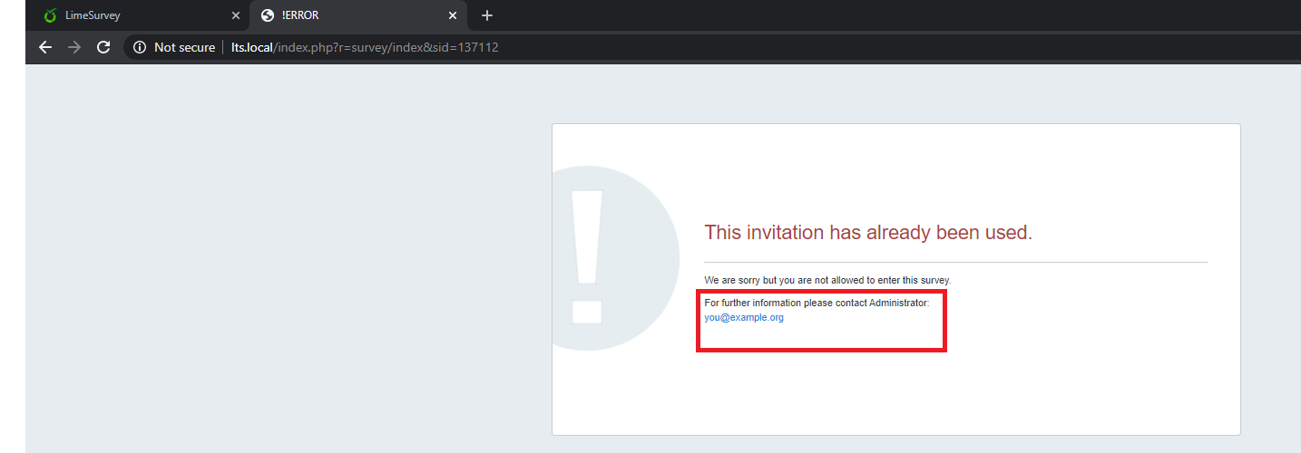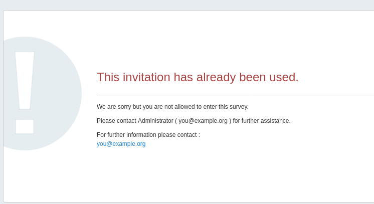 | Description | When enter in survey with an already used token : sentence about contact are show 2 times | ||||