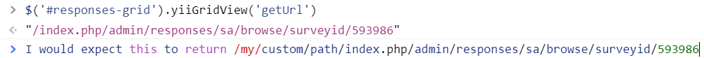 Here is the full call stack (example): "custom/path" is ignored, while all other requests work fine and include the path. Browser history works fine of course. Interestingly, filter options when looking at survey responses have the same problem too. For example, filter for completed answers only leads to wrong POST: |