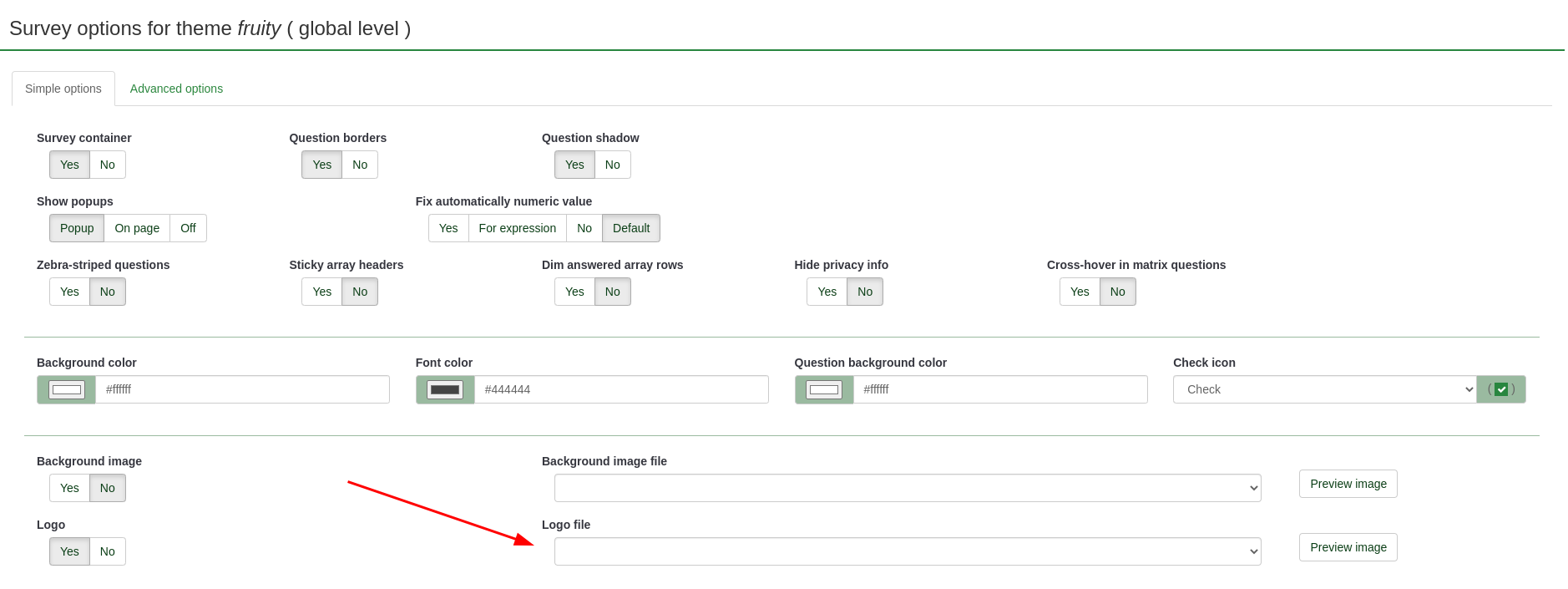 | Description | On every new installation, logo appears as "enabled" in global survey themes, but no file is preselected (see screenshot). Simplest solution: logo.png should always be selected inside global survey themes. That should apply to: