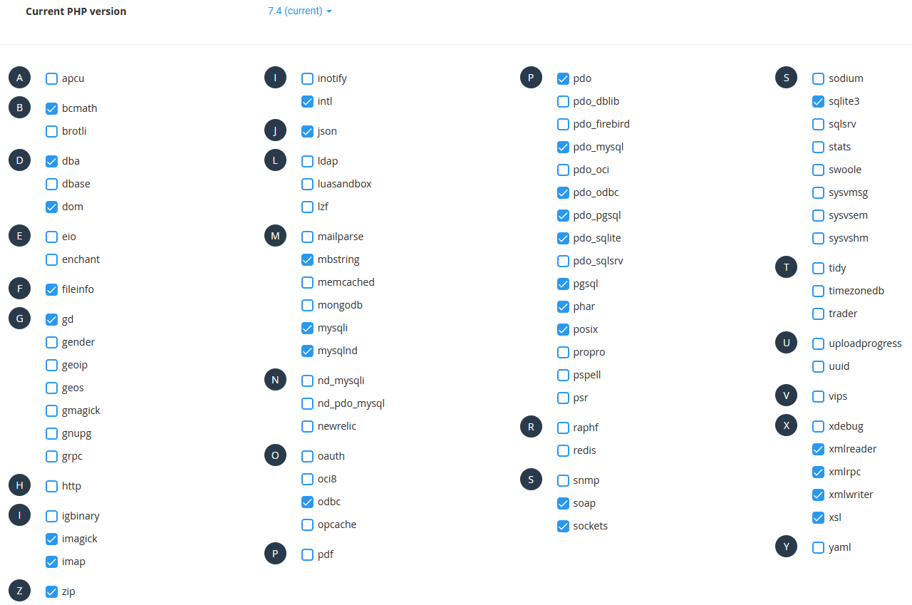 I believe I was wrong about the PHP version, it's 7.4, and I've attached a screenshot of the activated and available extensions. I posted this same issue on the LimeSurvey Forums and a partner there suggested this was an environment issue. Can anyone help me with this? |