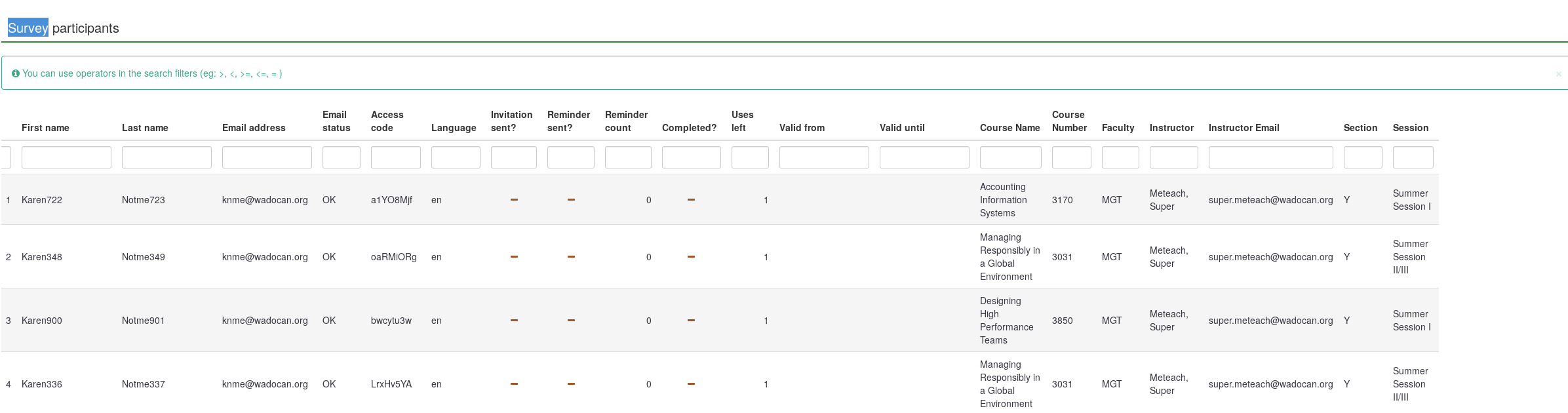 Wrong screenshot for participant table earlier. Here's the right one. |