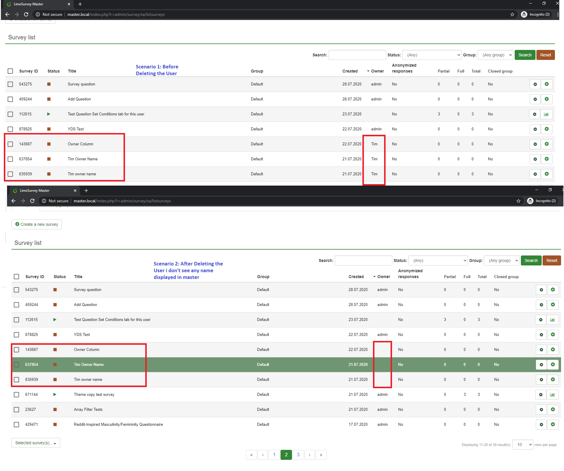 | Summary | 16529: After deleting a user who owned a survey, the survey list generates a dump | ||||